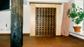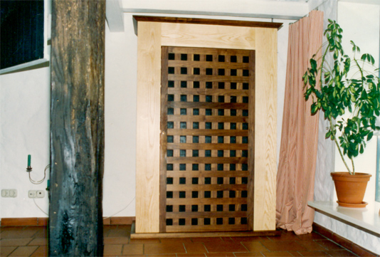 Medienschrank aus Esche und Gittertür aus Nussbaum