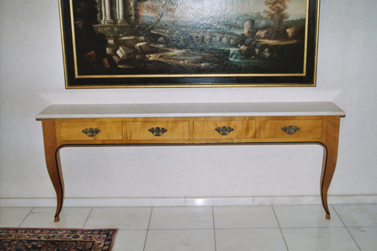 zweibeinige Kommode aus Kirschbaum mit einer Platte aus Mamor